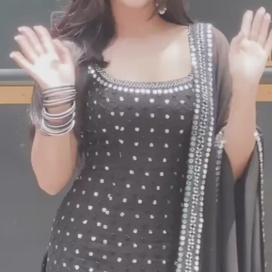 Make a bold yet elegant style statement with this black mirror work kurta pant set, designed for modern festive and party occasions.