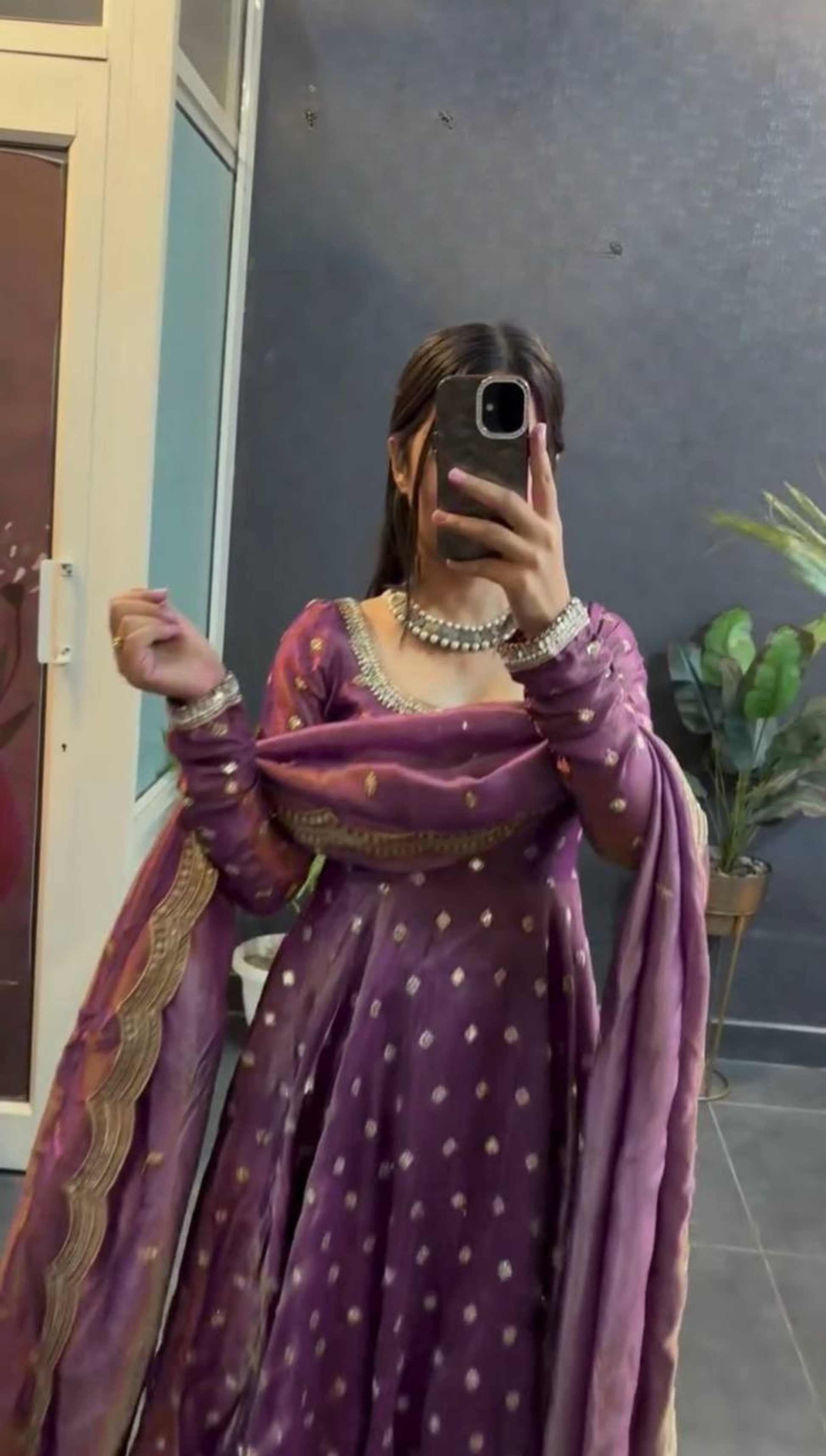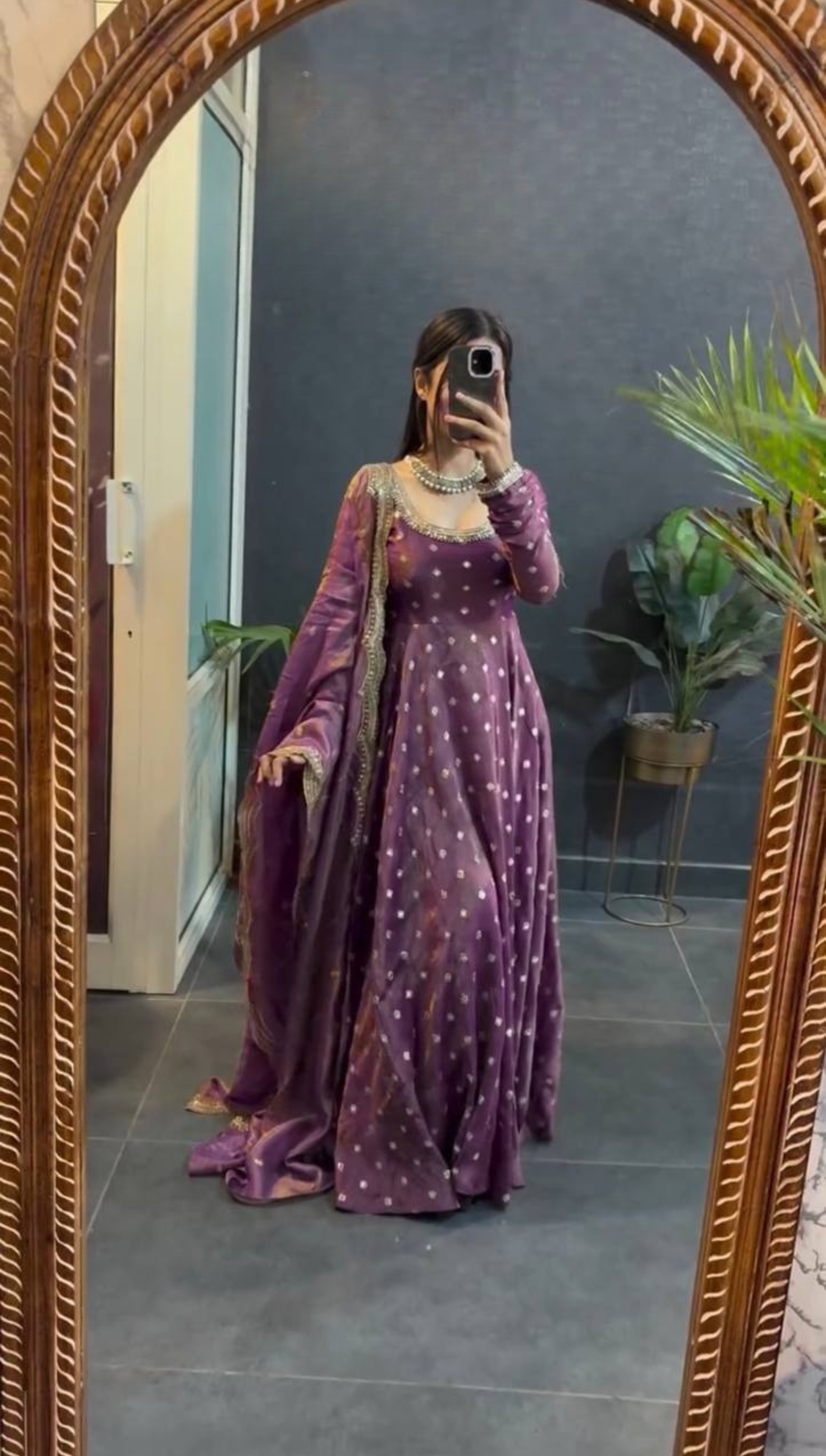 Elevate your ethnic wardrobe with this graceful designer Anarkali suit set, crafted to offer timeless elegance and effortless comfort. Featuring delicate all-over embellishments and a flowing silhouette, this outfit is perfect for festive occasions and special celebrations.