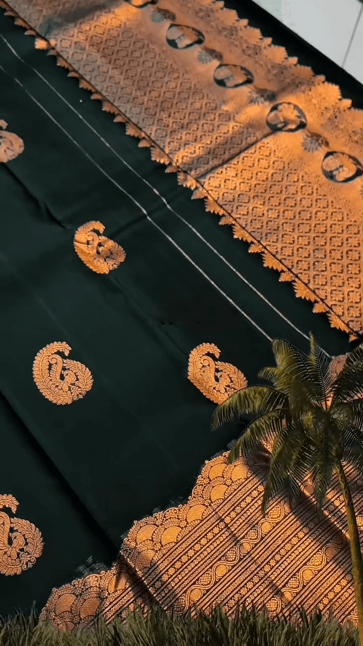 Desuetude Dark Green Soft Banarasi Silk Saree With Gorgeous Blouse Piece