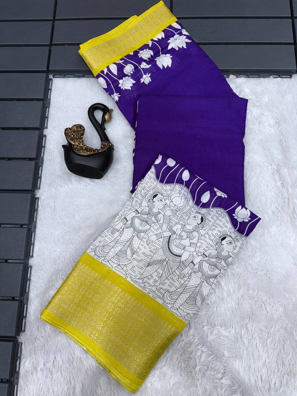 SAREE SPECIFICATIONS: Fabric: Dola Silk Colour: Royal Blue Work Type: Digital Printed & Jacquard Weaving