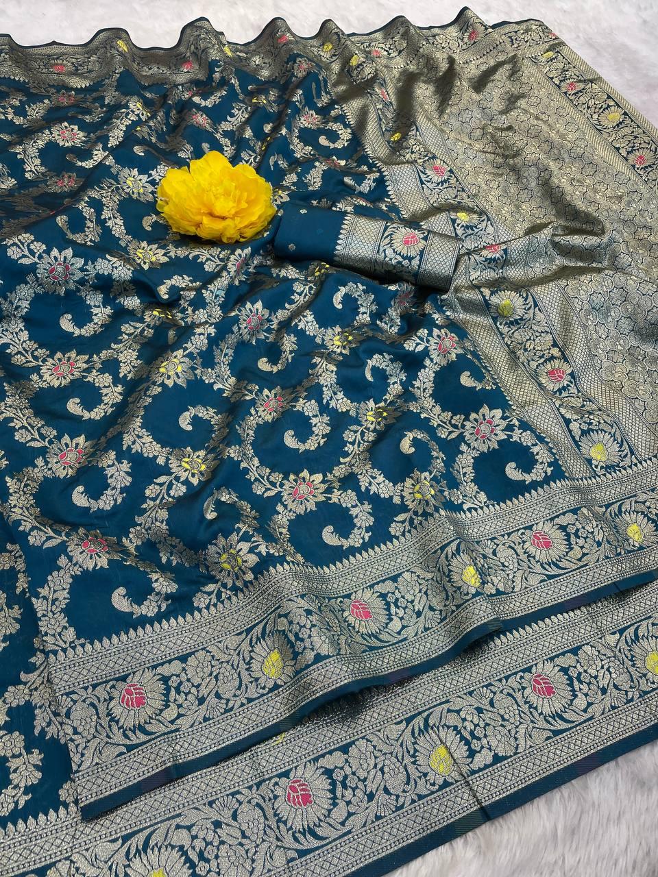 Wrap yourself in the timeless charm of our Soft Banarasi Silk Saree. Crafted with care and attention to detail, this saree features intricate weaving that adds a touch of sophistication to your look. Whether you're attending a wedding or a festive celebration, this saree will make you feel like a queen.