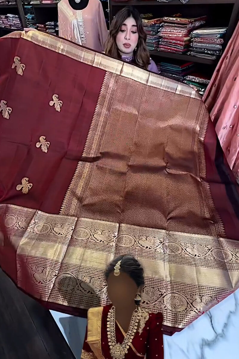 Enthralling Wine Soft Banarasi Silk Saree With Petrichor Blouse Piece