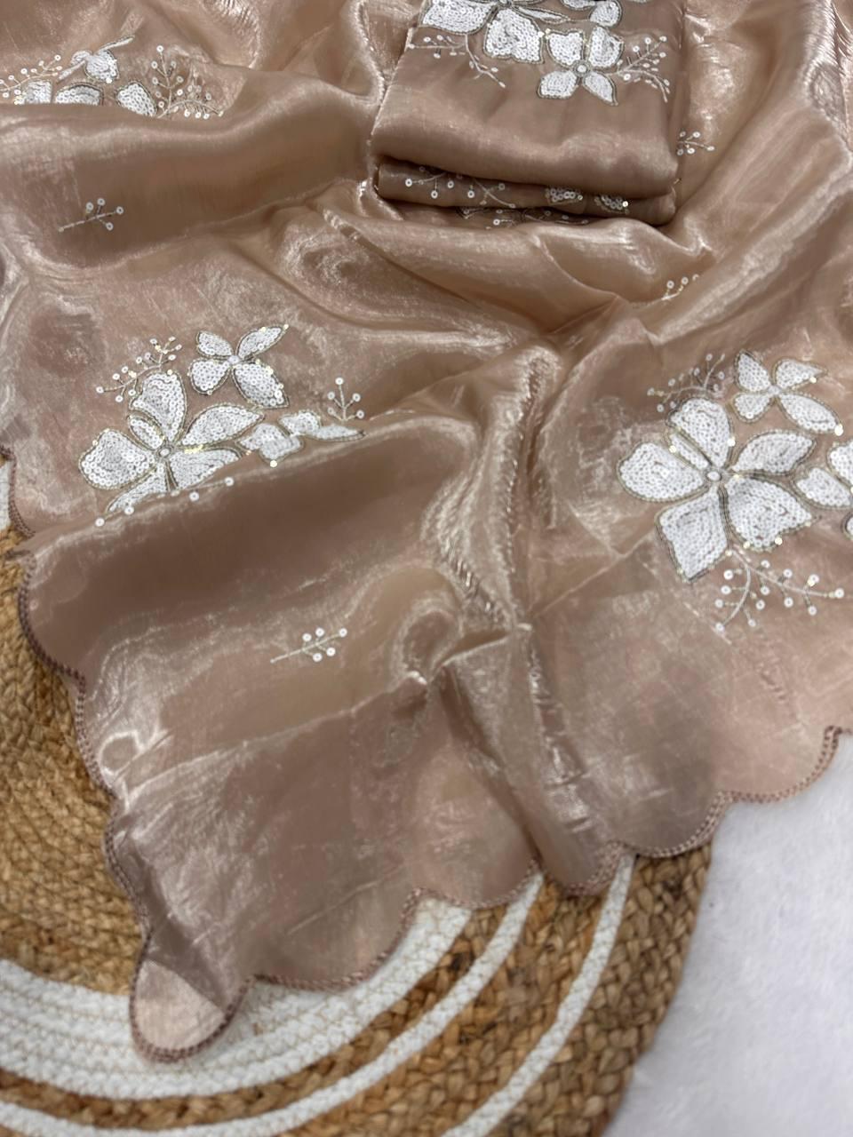 BLOUSE SPECIFICATION: Fabric: Jimmy Choo Silk Colour: Brown Work Type: Sequence Work Stitching Type: Unstitched