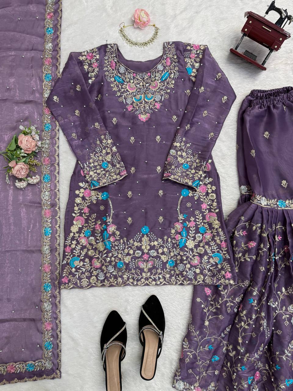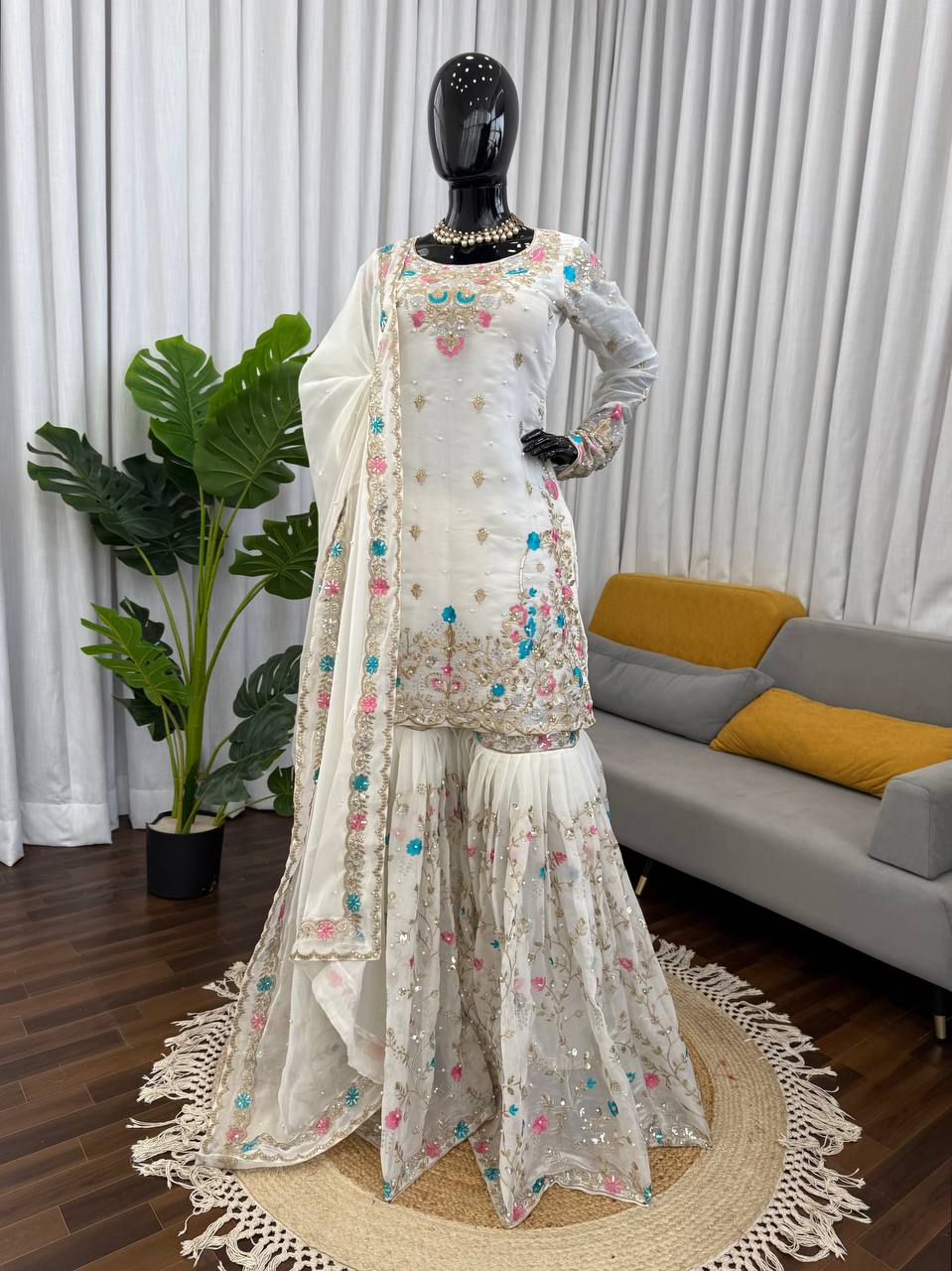 Heavy Embroidered Kurta Sharara Set with Dupatta | 5 Color Options