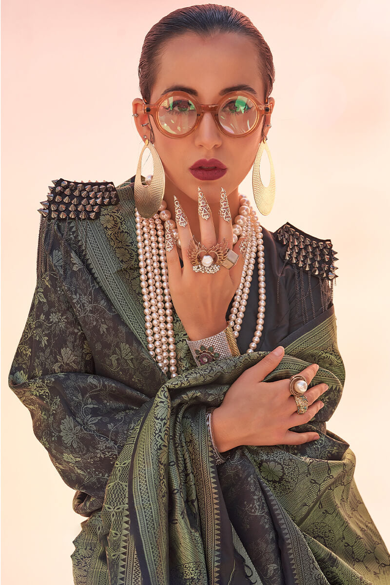 Hypnotic Black Kanjivaram Silk Saree With Majesty Blouse Piece