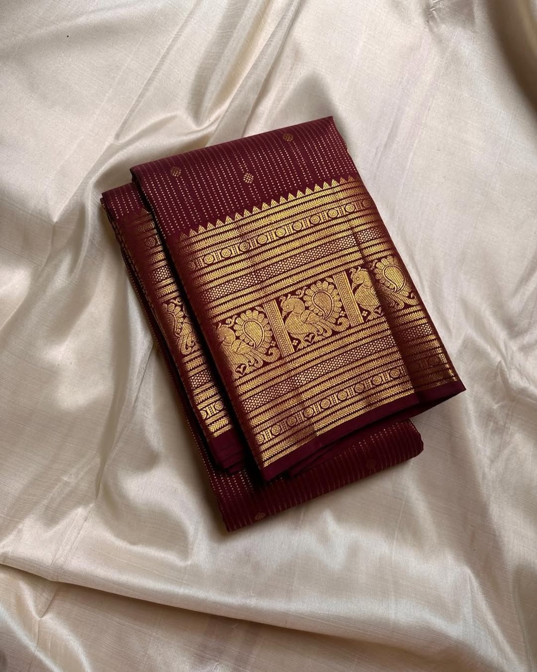 Hypnotic Maroon Soft Banarasi Silk Saree With Inimitable Blouse Piece