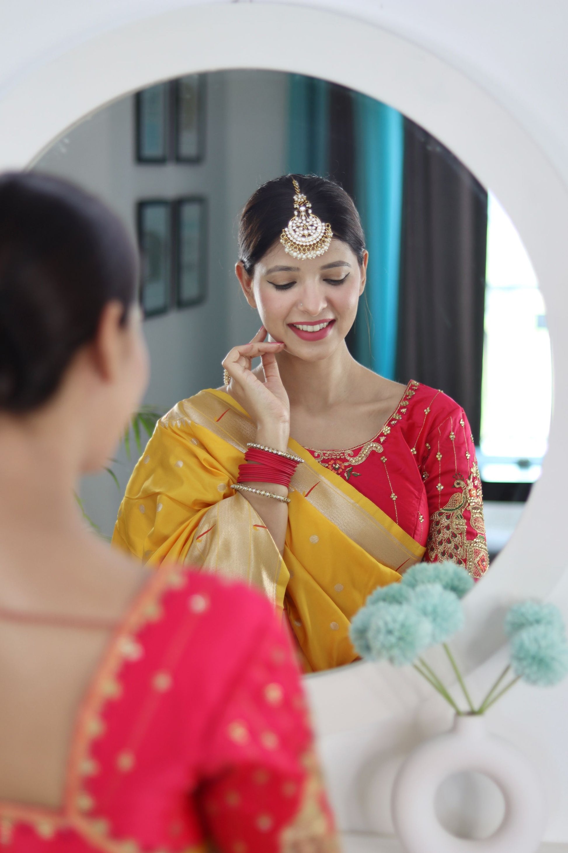 The Paithani Silk Saree is a true testament to traditional Indian craftsmanship. Made from pure silk, this exquisite piece reflects the rich heritage of Maharashtra. Its intricate zari work and vibrant colors accentuate the beauty of its intricately woven motifs, creating a stunning visual appeal. Lightweight and comfortable, this saree drapes elegantly, allowing you to embrace your femininity with grace.