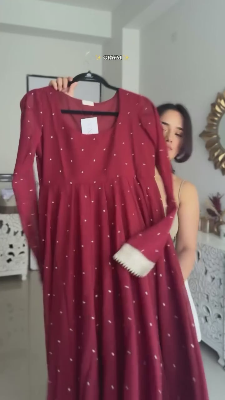 Maroon Dot Embellished Anarkali Kurti Set with Dupatta