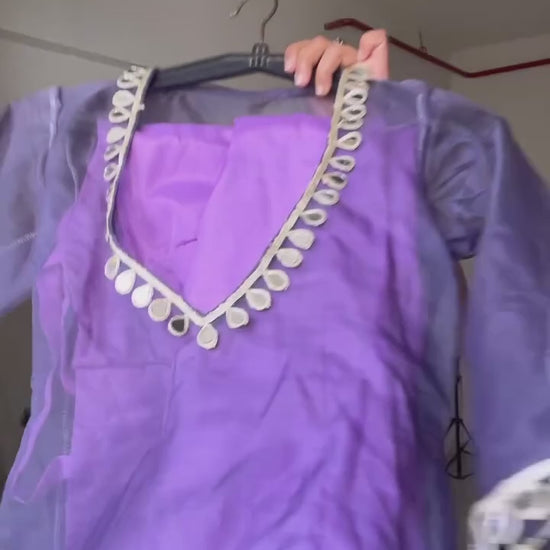 Mirror Work Organza Kurti with Satin Inner & Pants – 2 Color Options