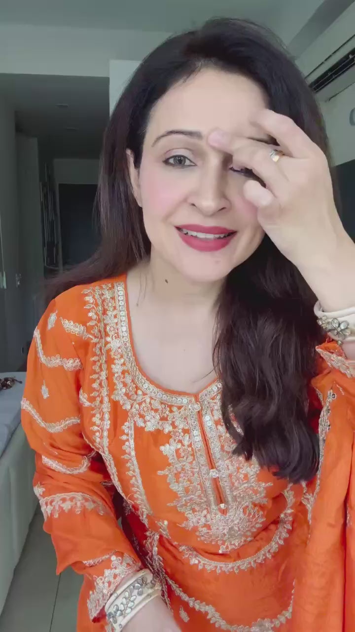 Make a bold festive statement with this vibrant orange embroidered kurta sharara set, beautifully paired with a contrasting pink sharara and a matching orange dupatta. The kurta features intricate embroidery on the neckline, yoke, sleeves, and hem, giving it a rich traditional appeal with a graceful silhouette.