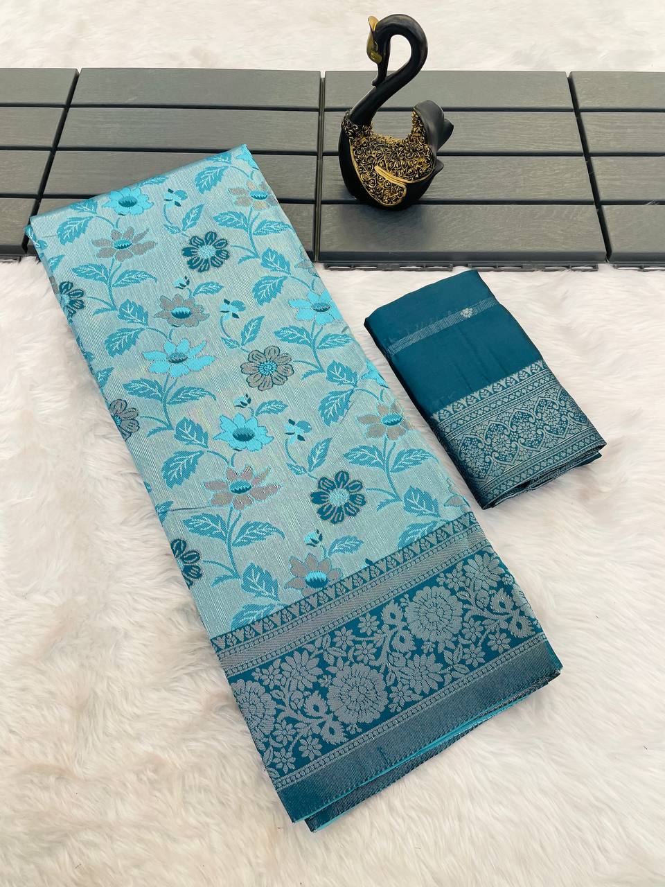Elevate your look with our exquisite Soft Banarasi Tissue Silk Saree. Crafted with the finest silk, this saree exudes luxury and sophistication. The intricate floral patterns and shimmering texture will surely make you stand out at any special occasion.