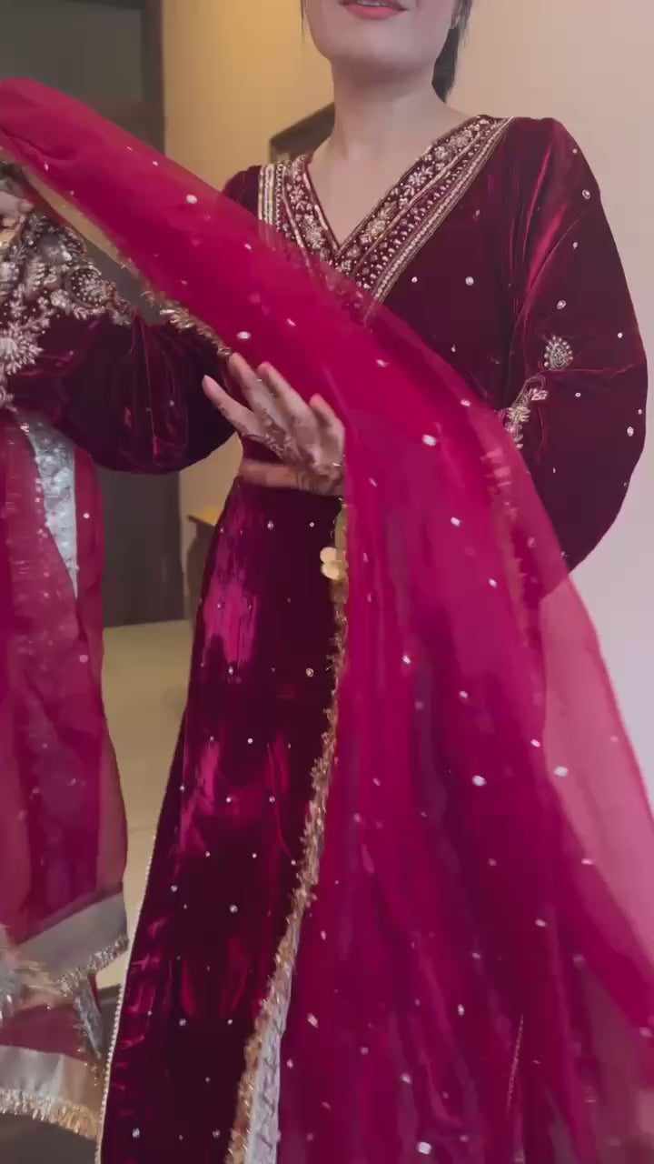 Make a graceful statement with this luxurious velvet kurta set, crafted for festive and wedding occasions. Designed with rich embroidery and a soft sheen, this outfit blends traditional elegance with modern comfort.