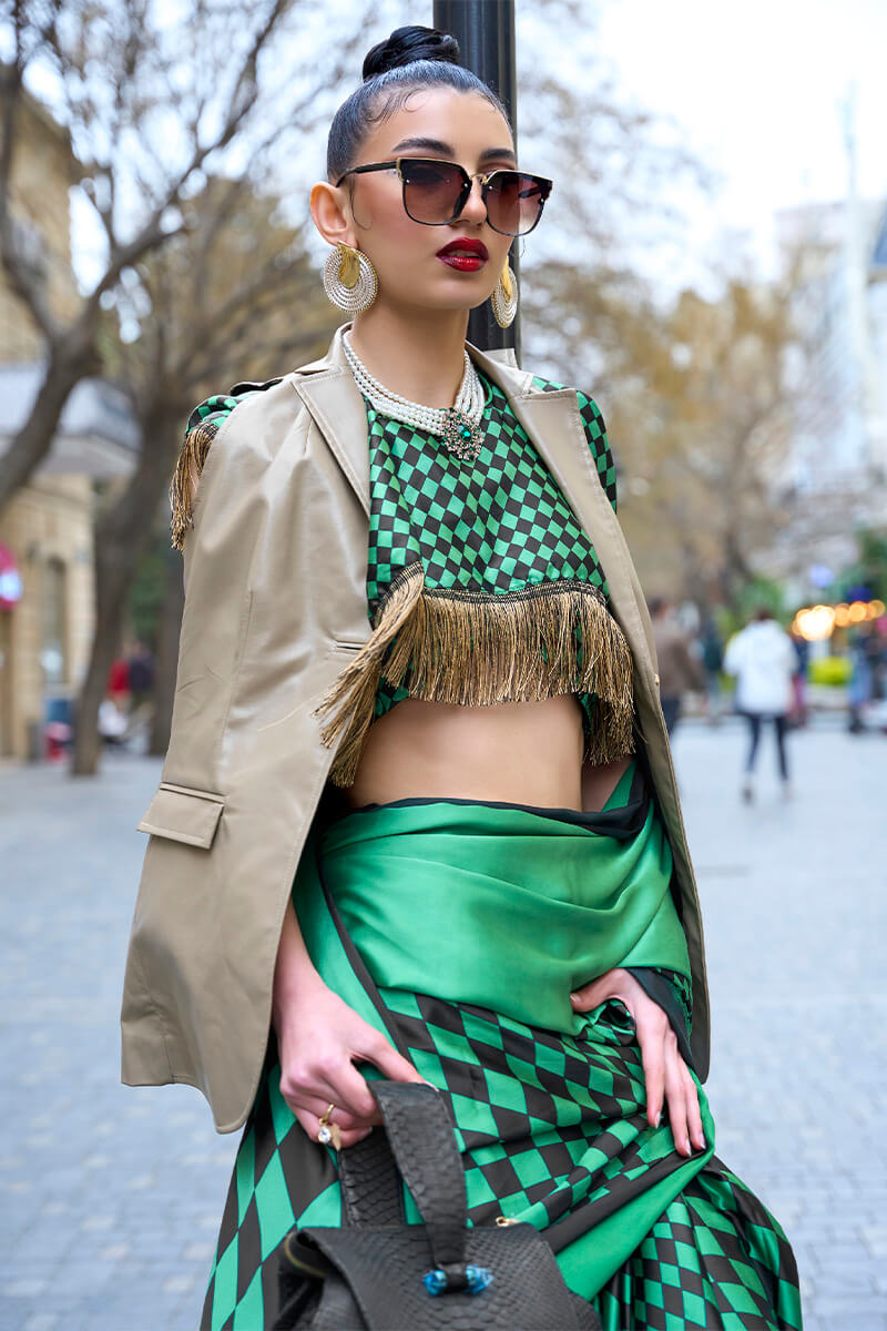 SAREE SPECIFICATIONS: Fabric: Satin Silk Colour: Sea Green Work Type: Digital Printed