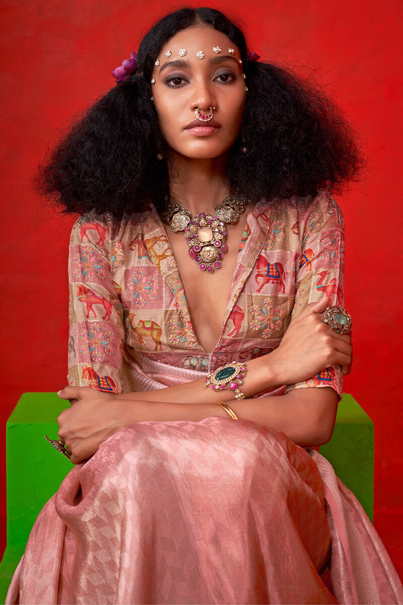 Wrap yourself in luxury with our Soft Banarasi Tissue Silk Saree. The lightweight fabric glides effortlessly over your skin, while the mesmerizing Banarasi weave reflects the rich heritage of Indian craftsmanship. Elevate your style with this timeless piece that exudes sophistication.