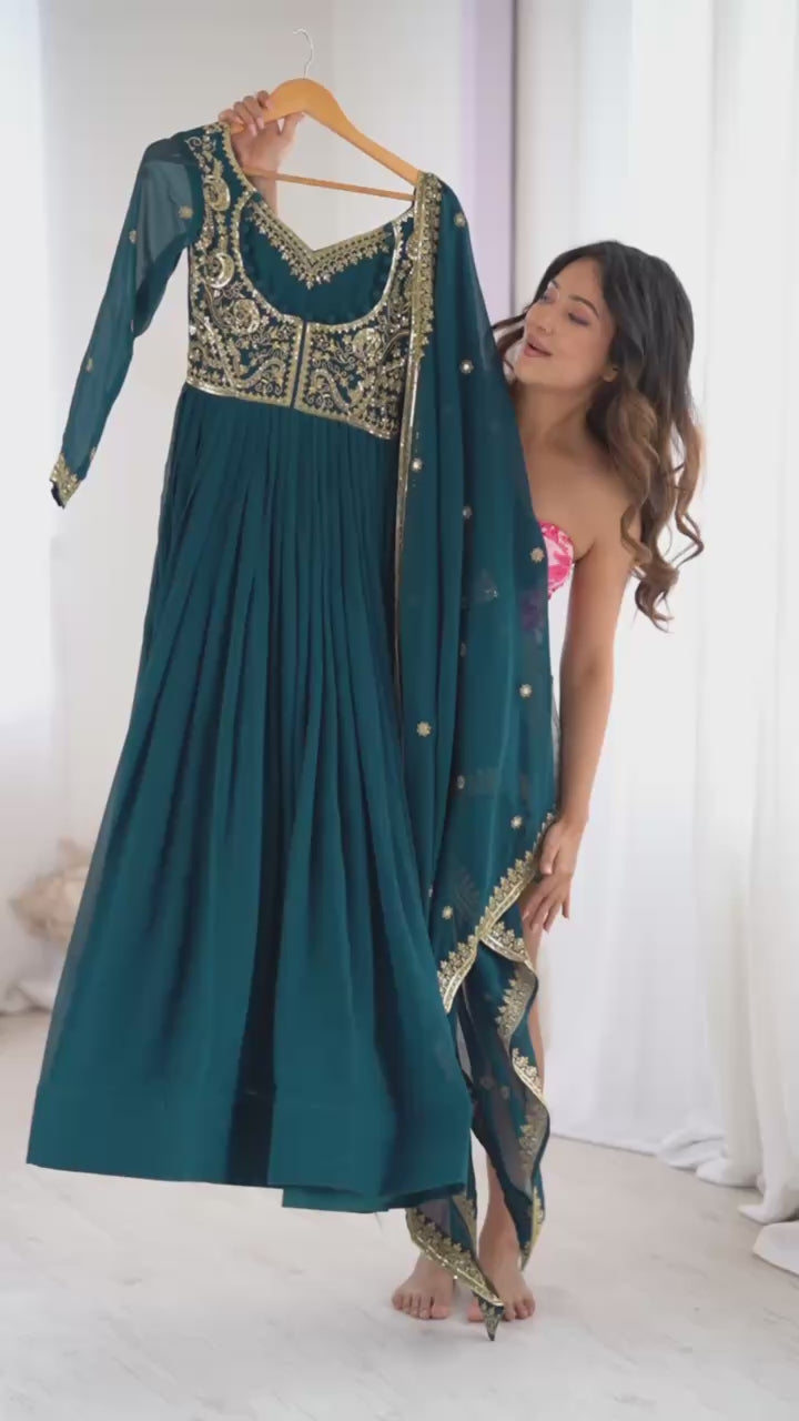 Embroidered Anarkali Suit Set with Dupatta & Bottom – Teal Blue & Wine (2 Colors)